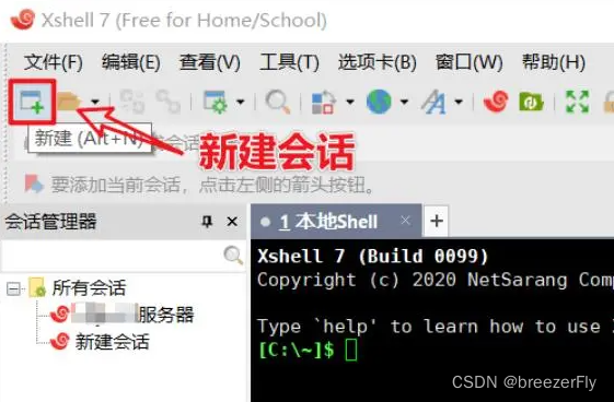 当Xshell启动后,我们就可以连接目标服务器了。具体的连接方法如下: