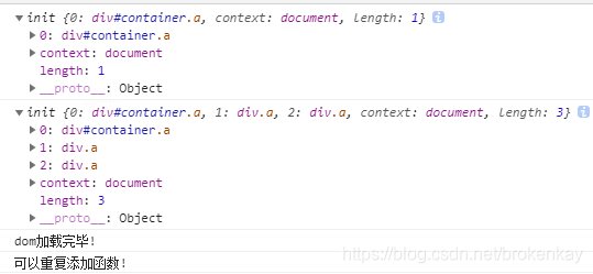 当content为函数类型时,我们只需要将函数收集起来放到fun_list数组中,并且监听浏览器的DOMContentLoaded事件,当浏览器中的dom元素全部加载完毕后我们循环执行fun_list数组中的函数即可.