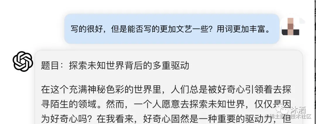为了试探GPT是否具备更多可能性,把文章写的更文艺一些,于是我换了个问法: