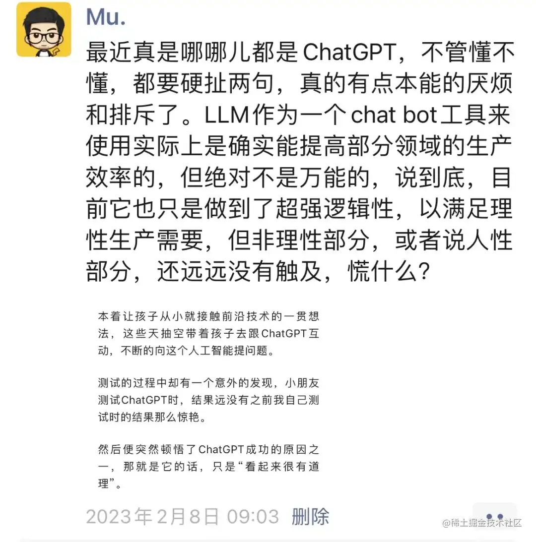 其实相关观点我在之前的文章里已经表达过一次了,大家可以点这个看下:《不会出错的ChatGPT毫无意义》。