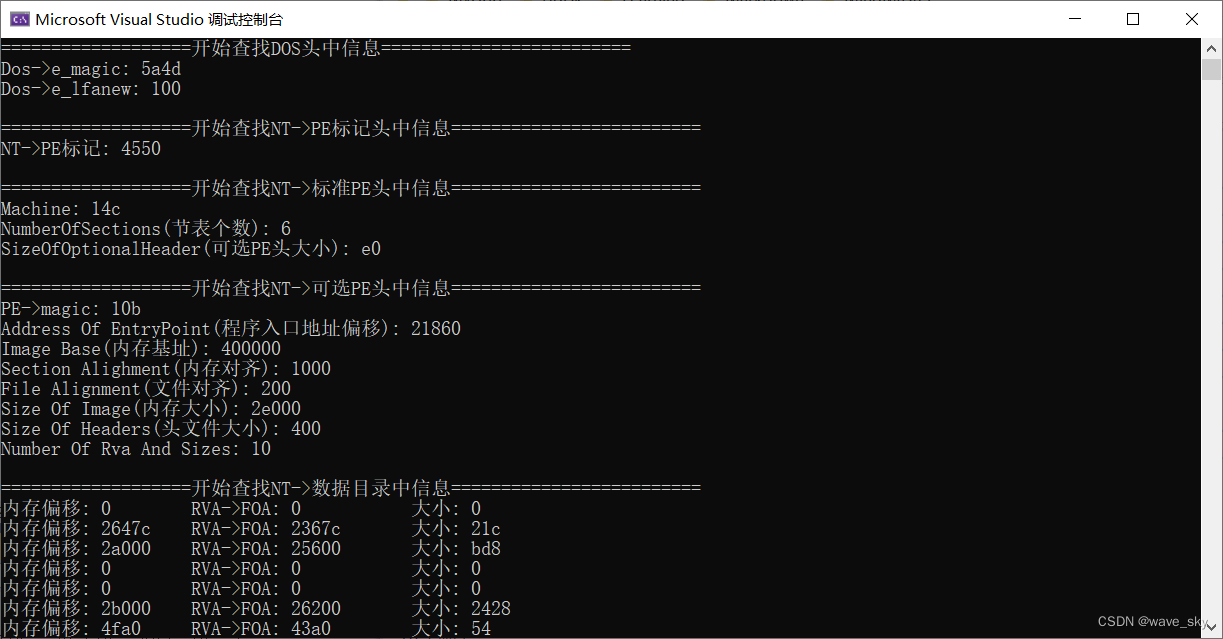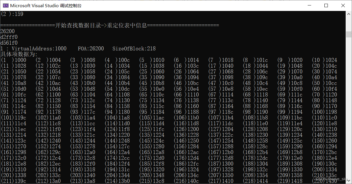 //打印各个数据目录的信息,创建table_address=table_p存储各个数据目录的地址(foa), table_before=table_p2存储rva