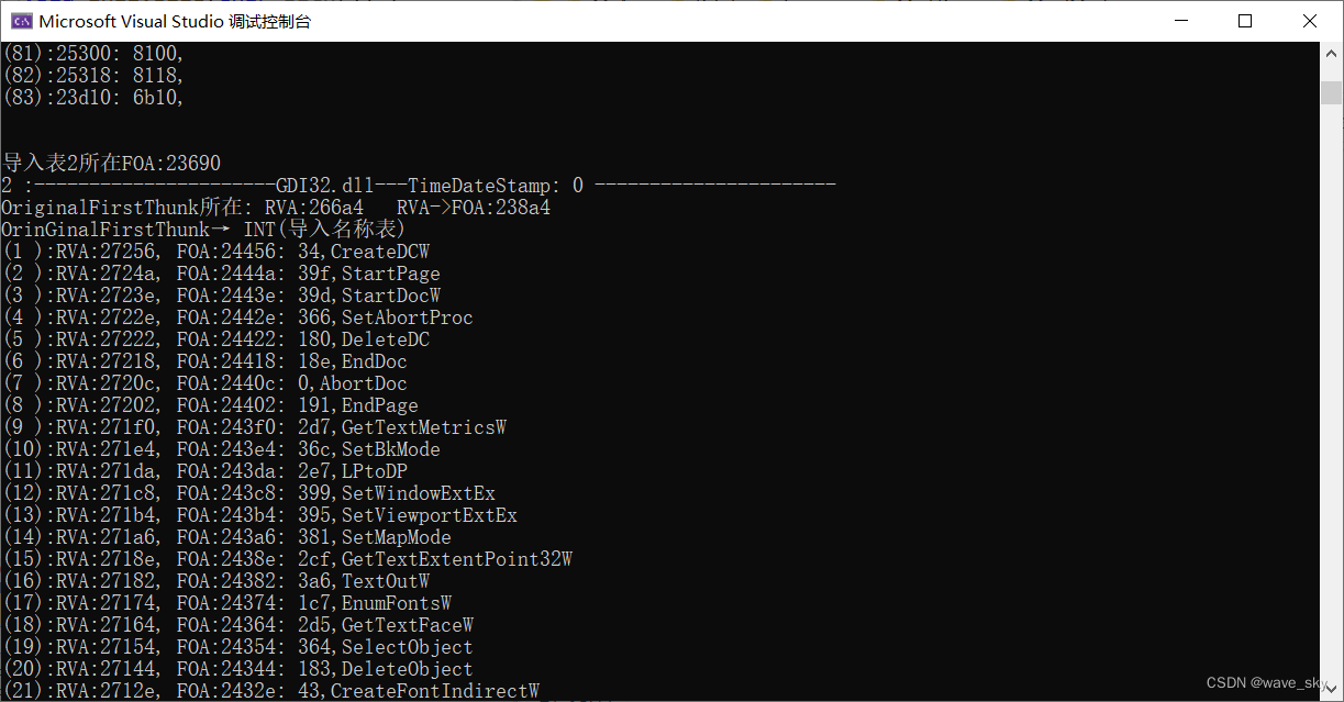 printf("FirstThunk→ IAT(导入地址表)\n");