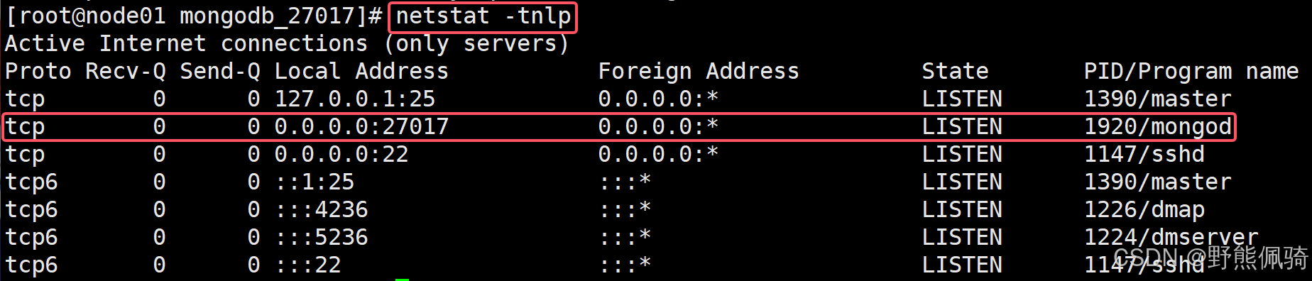 ● 查看MongoDB服务端口是否起来(默认为27017)