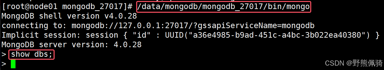 [root@node01 mongodb_27017]# /data/mongodb/mongodb_27017/bin/mongo
