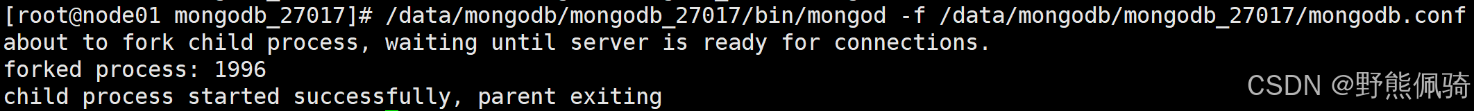 [root@node01 mongodb_27017]# /data/mongodb/mongodb_27017/bin/mongod -f /data/mongodb/mongodb_27017/mongodb.conf