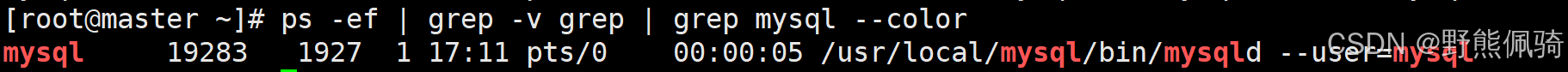[root@master ~]# ps -ef | grep -v grep | grep mysqld --color