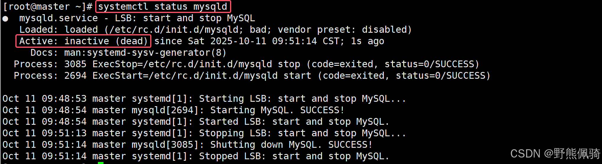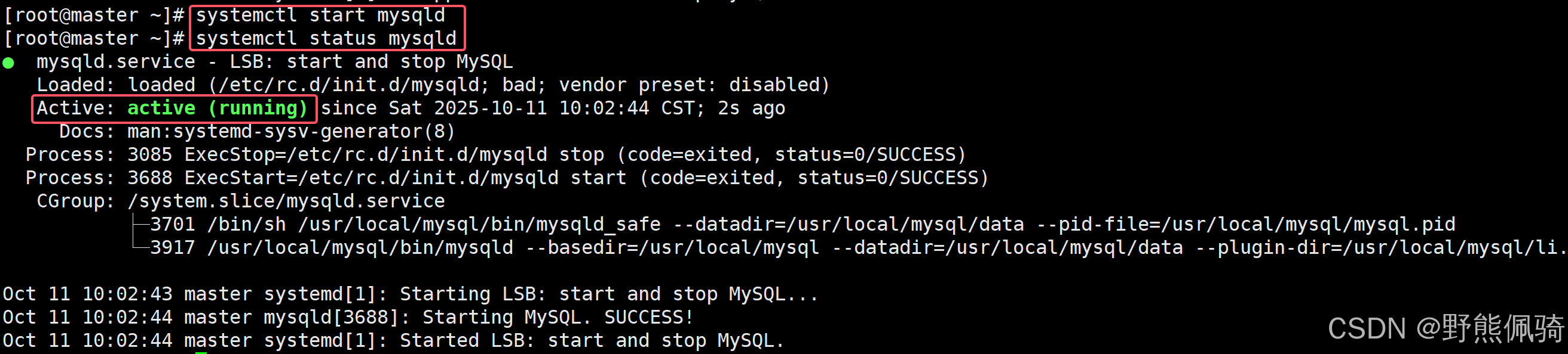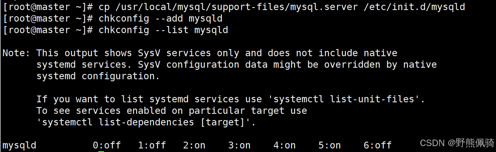 [root@master ~]# cp /usr/local/mysql/support-files/mysql.server /etc/init.d/mysqld