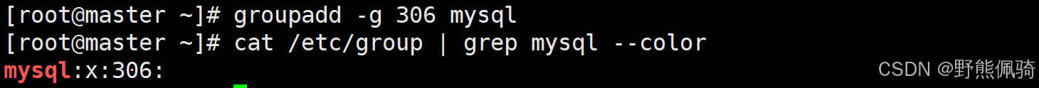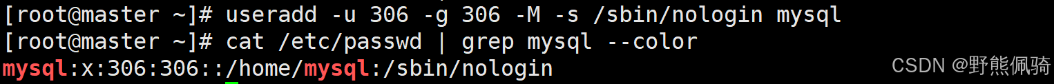 [root@master ~]# cat /etc/passwd | grep mysql --color