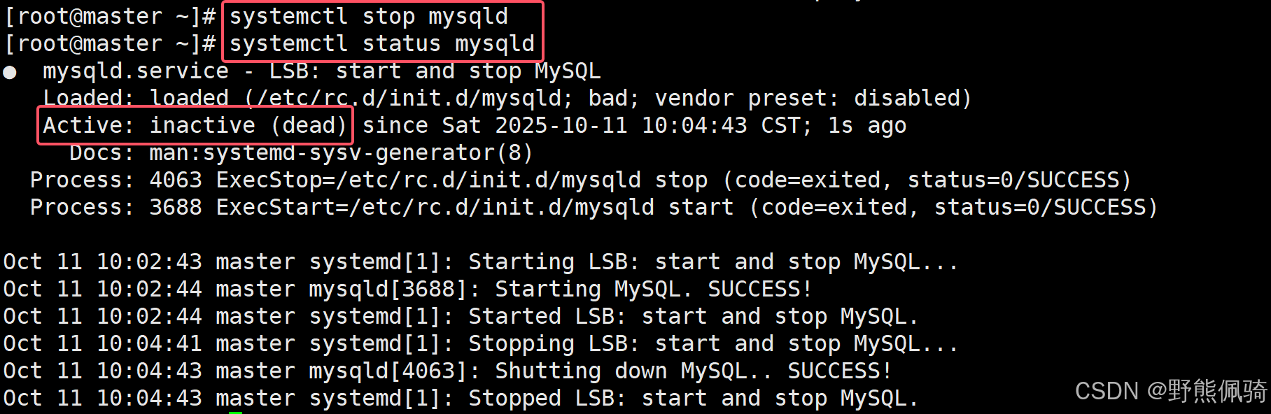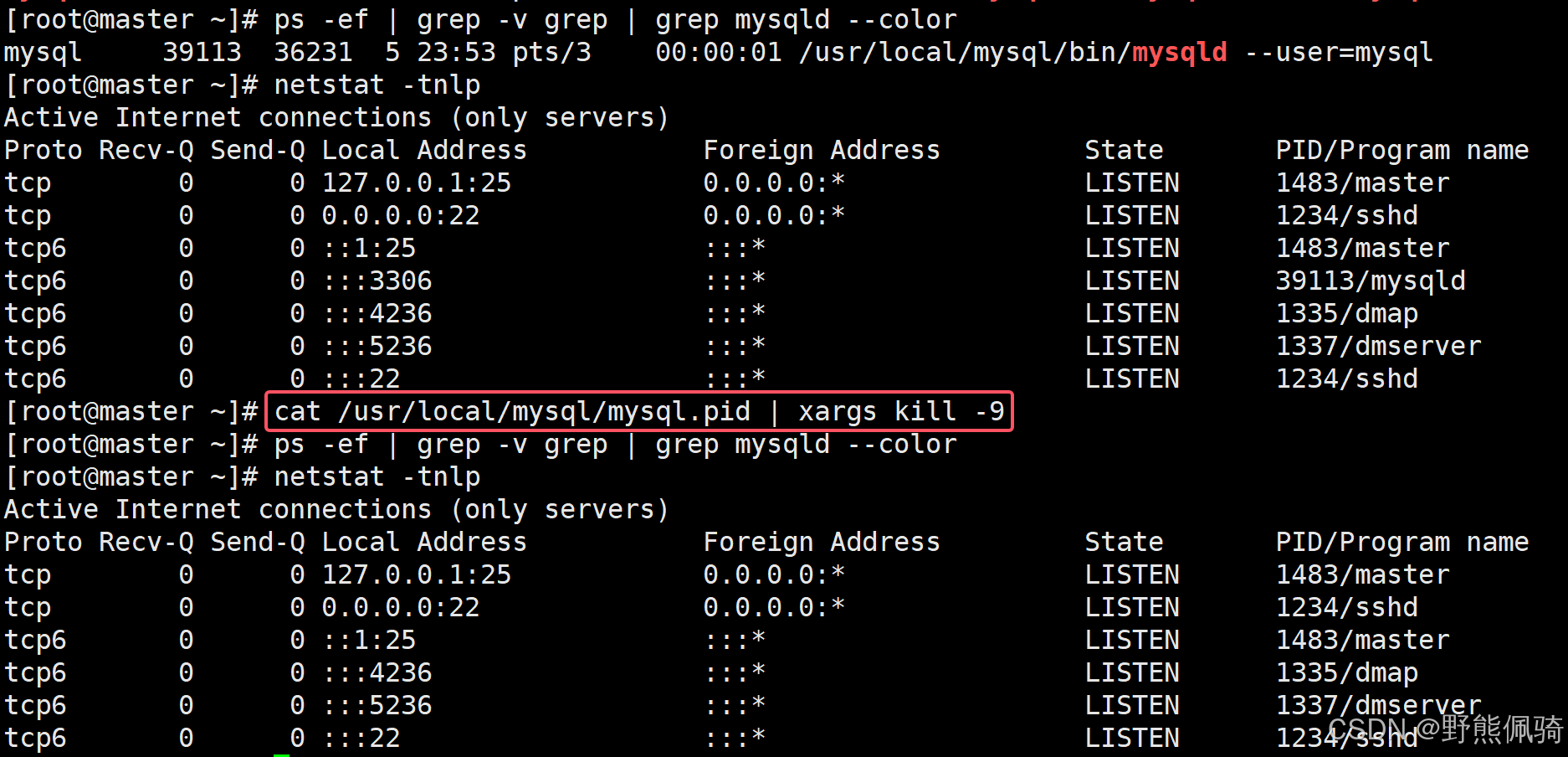 [root@master ~]# cat /usr/local/mysql/mysql.pid | xargs kill -9