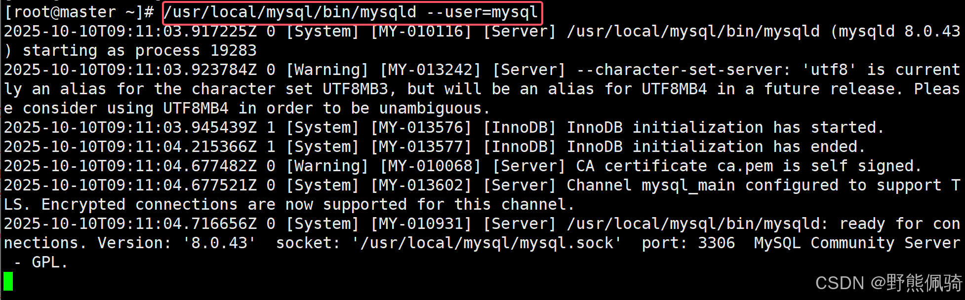 [root@master local]# chown -R mysql:mysql mysql-8.0.43-linux-glibc2.17-x86_64