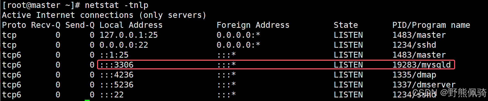 由上可见,MySQL服务进程以及3306端口均正常启动。
