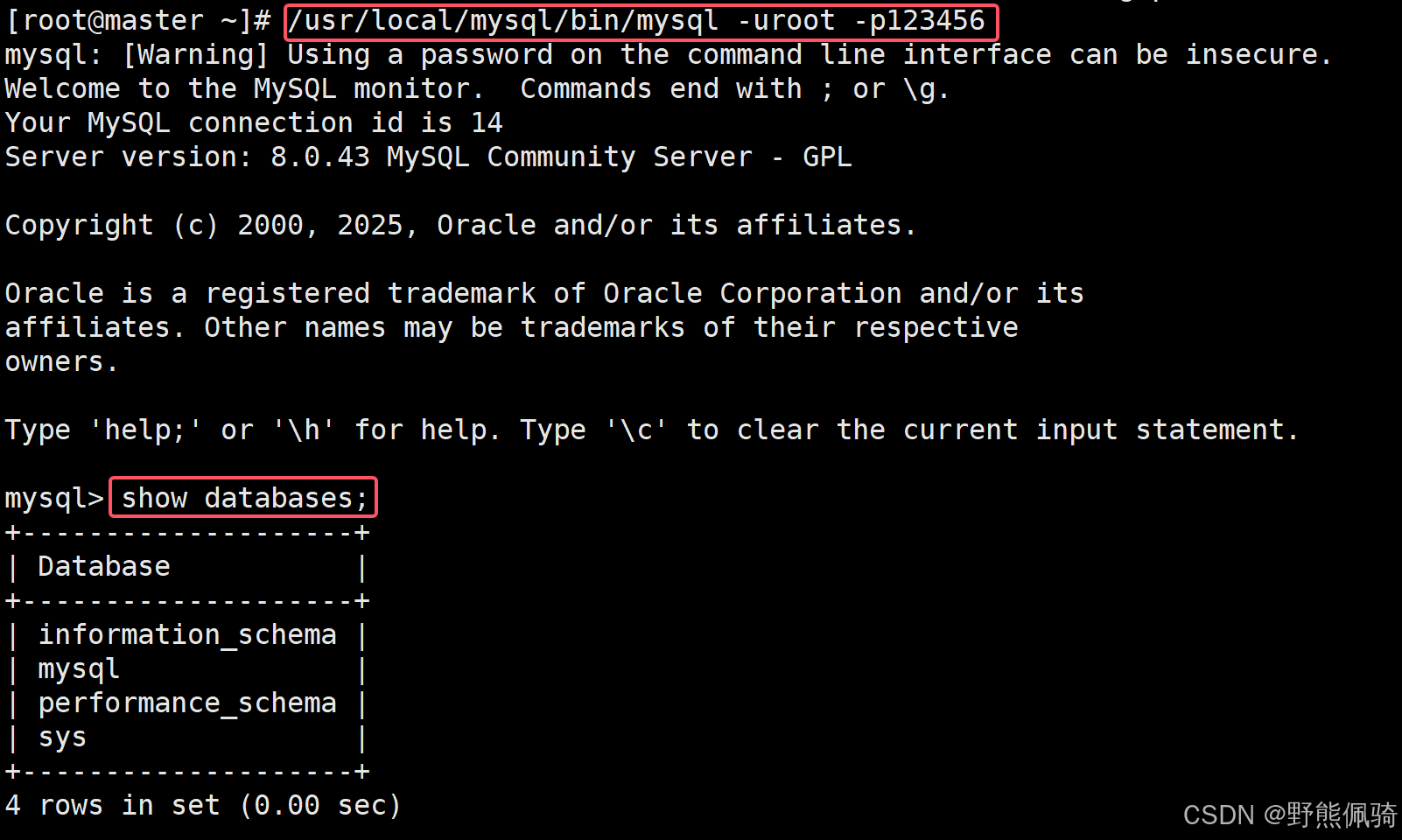 [root@master ~]# /usr/local/mysql/bin/mysql -uroot -p123456