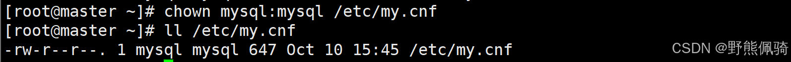 [root@master ~]# chown mysql:mysql /etc/my.cnf
