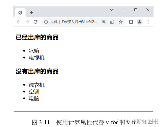【例3.9】 使用计算属性代替v-for和v-if(源代码\ch03\3.9.html)。