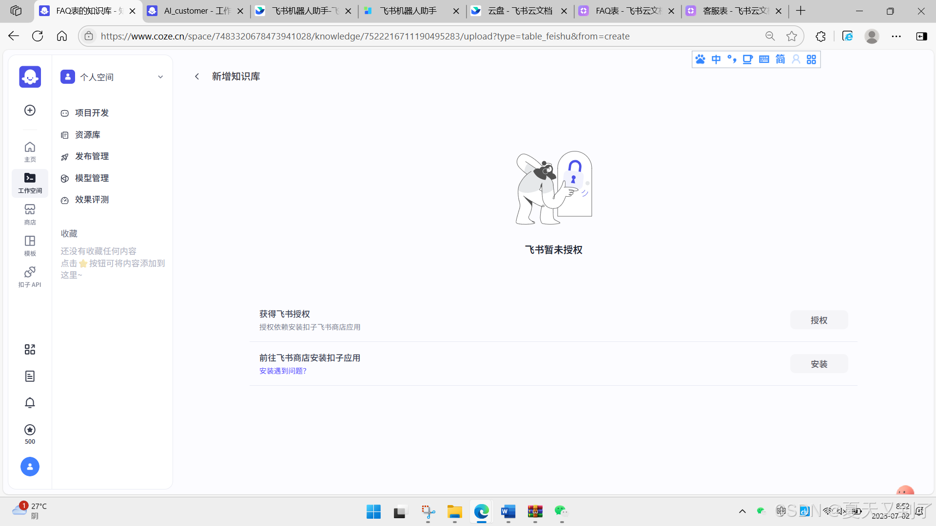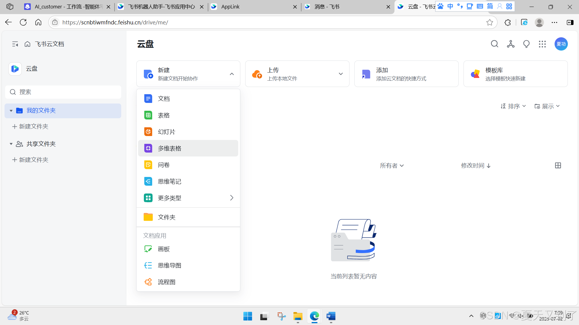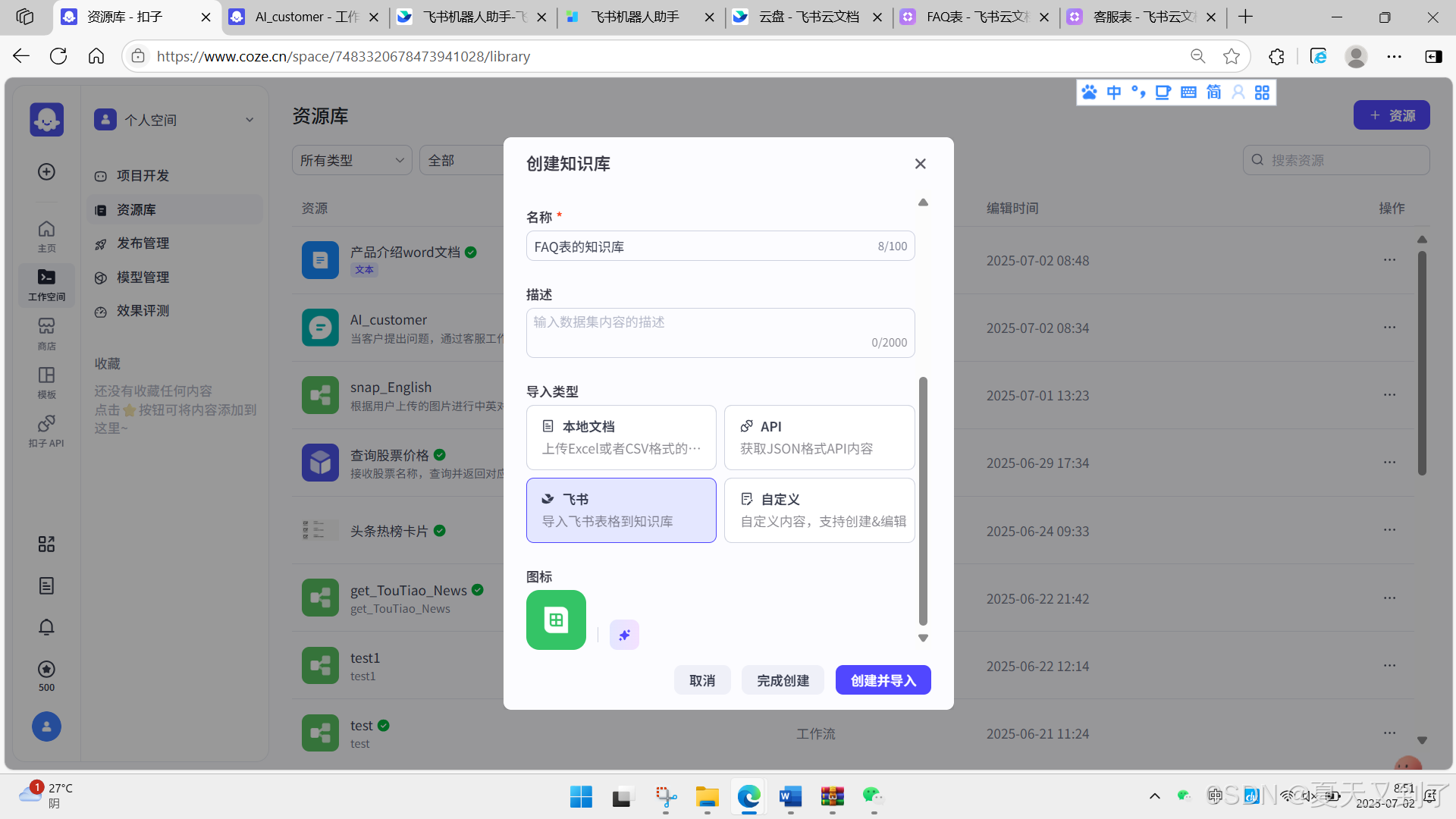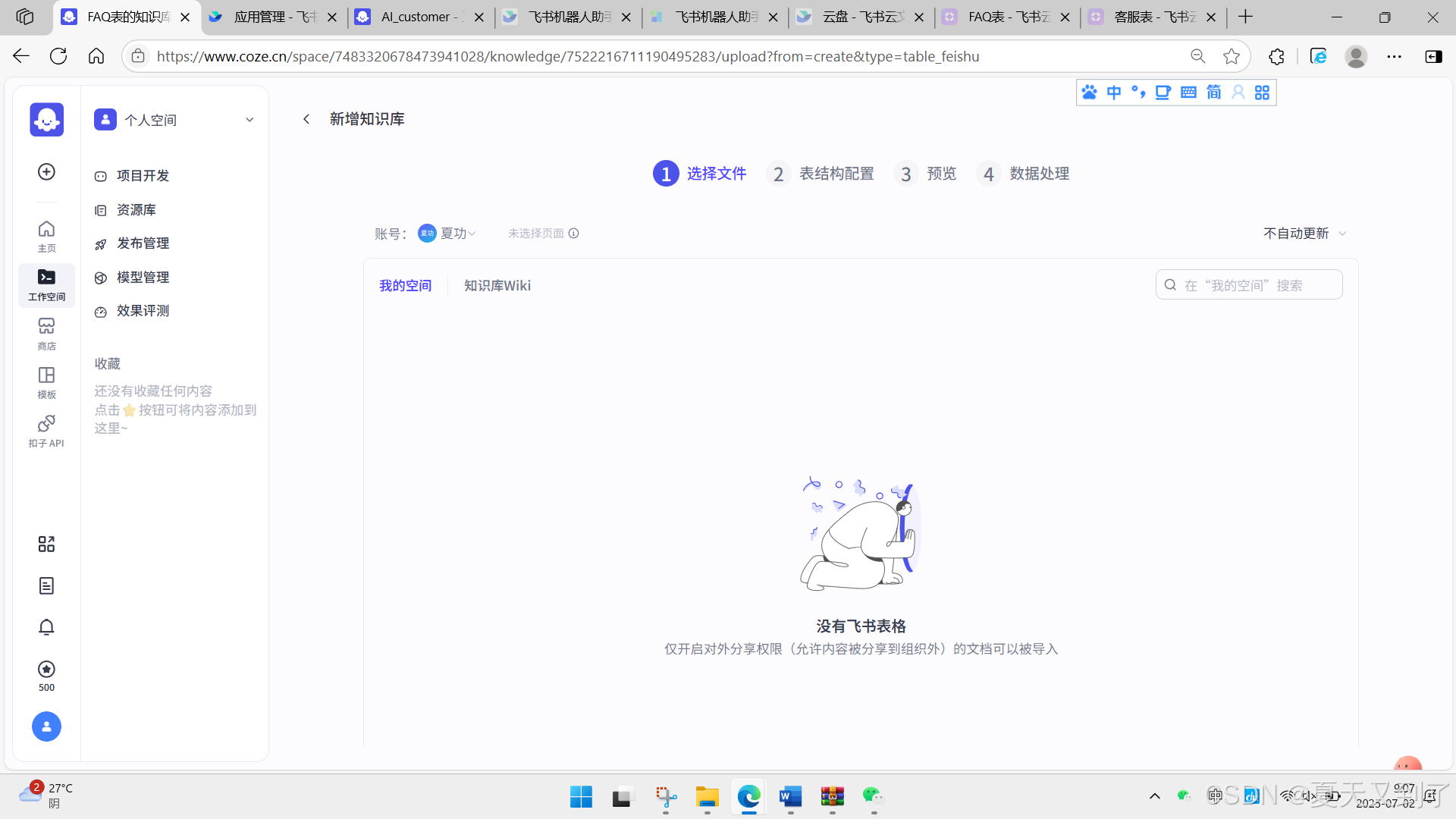 本地知识库创建成功后,再尝试创建飞书表格知识库。