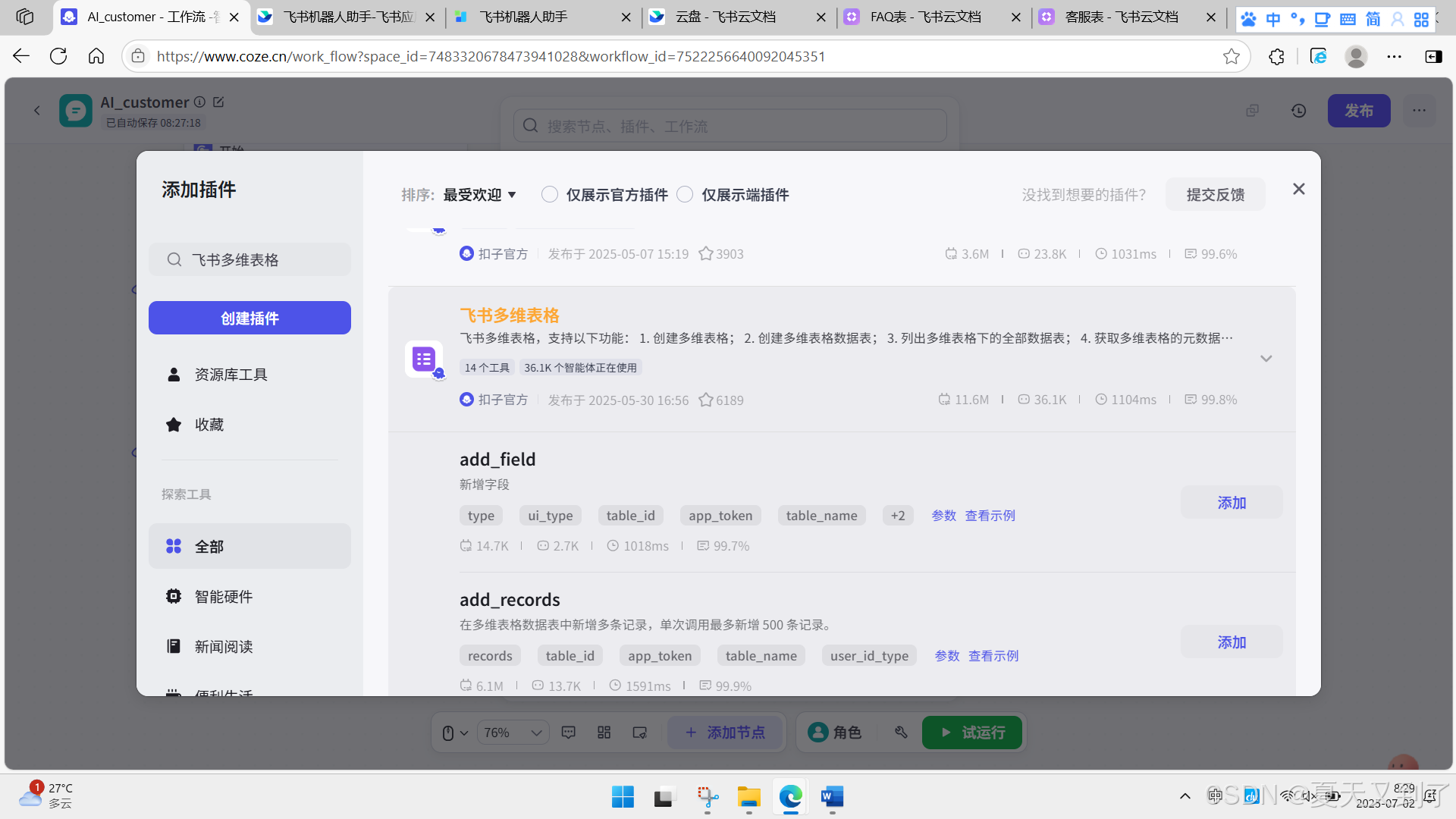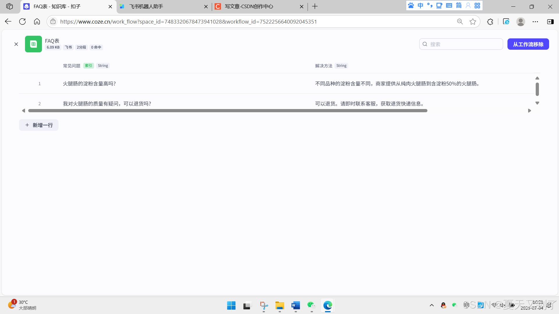 这样我们只要在客服表中,把是否添加为FAQ字段值选为“是”,就能把扣子客服回答的问题,也就是客服表中的该条记录自动存入标准回答库,方便后续我们在智能体中调用。