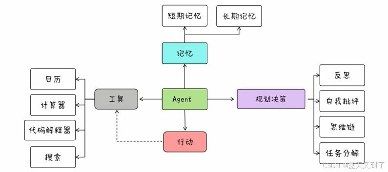 - 行动组件:说白了就是它动手干活的部分。它能根据任务选择不同的方法—要查资料就翻记忆库,要分析问题就分步推理,甚至还能自己写代码。