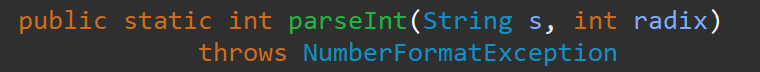 异常:NumberFormatException如果字符串s不含有能够转换的整数