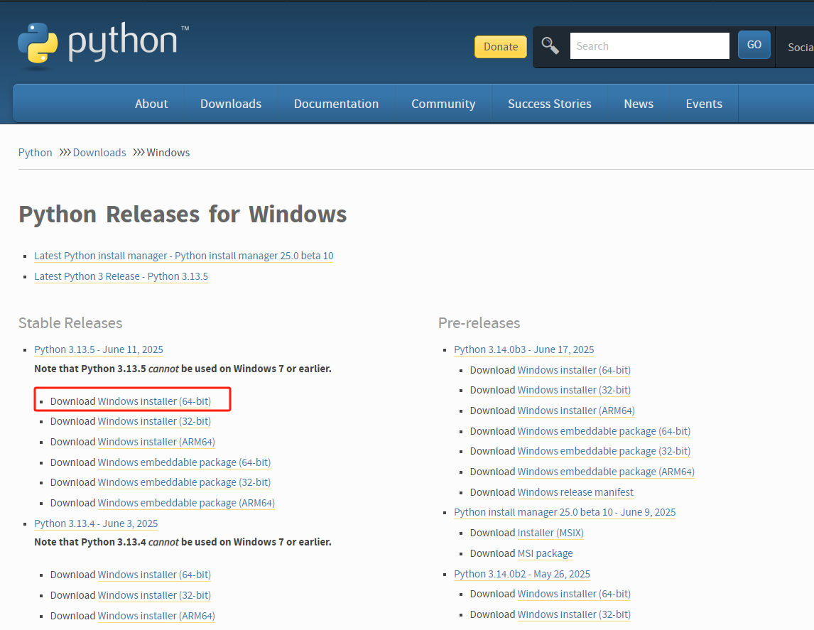 - 点击"Download Python x.x.x"按钮(x.x.x代表最新版本号)