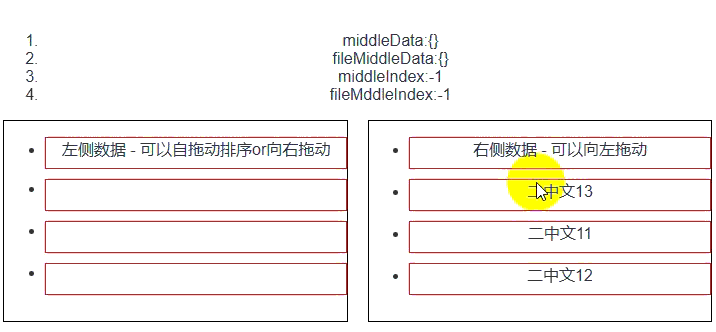 <li>左侧数据 - 可以自拖动排序or向右拖动</li>
