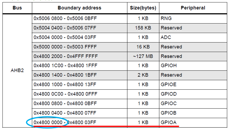 蓝色圆圈处,就是GPIOA模块寄存器的基地址:0x48000000