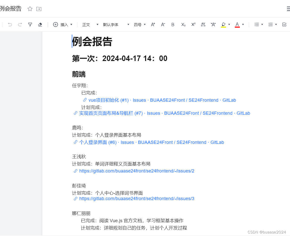 通过微信群聊、腾讯会议、线下例会沟通对接,使用腾讯文档记录