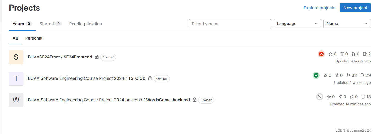 CI / CD:前后端仓库均编写.gitlab-ci.yml ; 实现自动部署