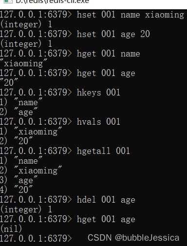 哈希hash操作命令(是一个string类型的field字段和value的映射表,hash适合于存储对象)