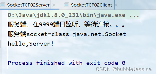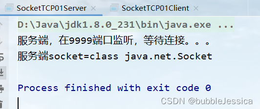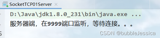 System.out.println("服务端,在9999端口监听,等待连接。。。");