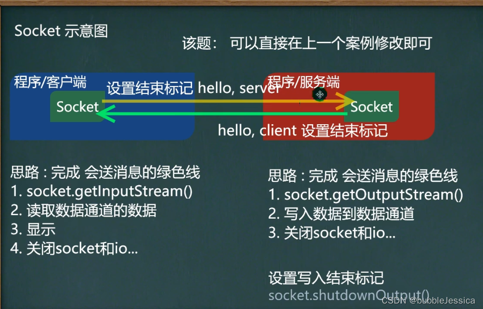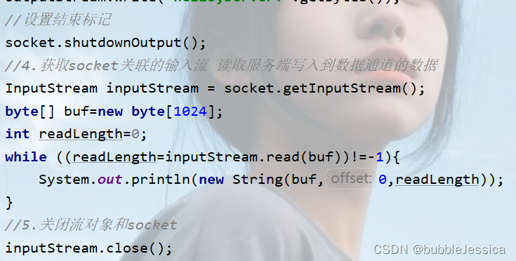 跟开头代码相比,增加了上面内容,必须牢记添加输出流写完数据后,需要添加socket.shutdownOutput();