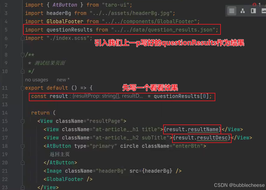 微信小程序有一个限制,就是不能打开太多页面,然后让用户进行过多次数的回退。于是,在结果页面的“返回首页”按钮处,就不能直接用Taro.navigateTo了,会导致页面的堆积。