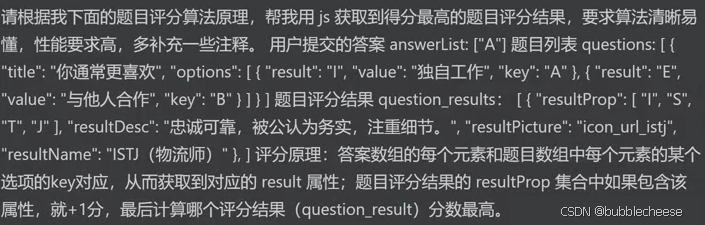 在这题里,A 就对应了 I,选择就将 I 的分数+1;B 就对应 E,将 E 的分数+1。最后再比较每对属性的分数,取更高分数的那一个字母作为你的属性。