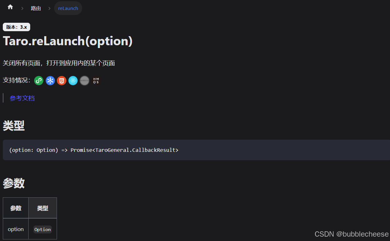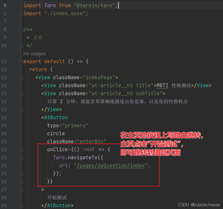之前说过,我们学一个新的框架,要想找到一个不会的功能的语法,就直接到官网上搜。Taro 的路由跳转就是用 Taro.navigateTo 来实现的,如下。