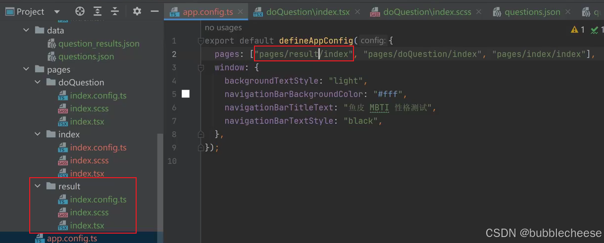 接着写结果页面。跟之前一样,新建一个结果页面的文件夹,写进路由。