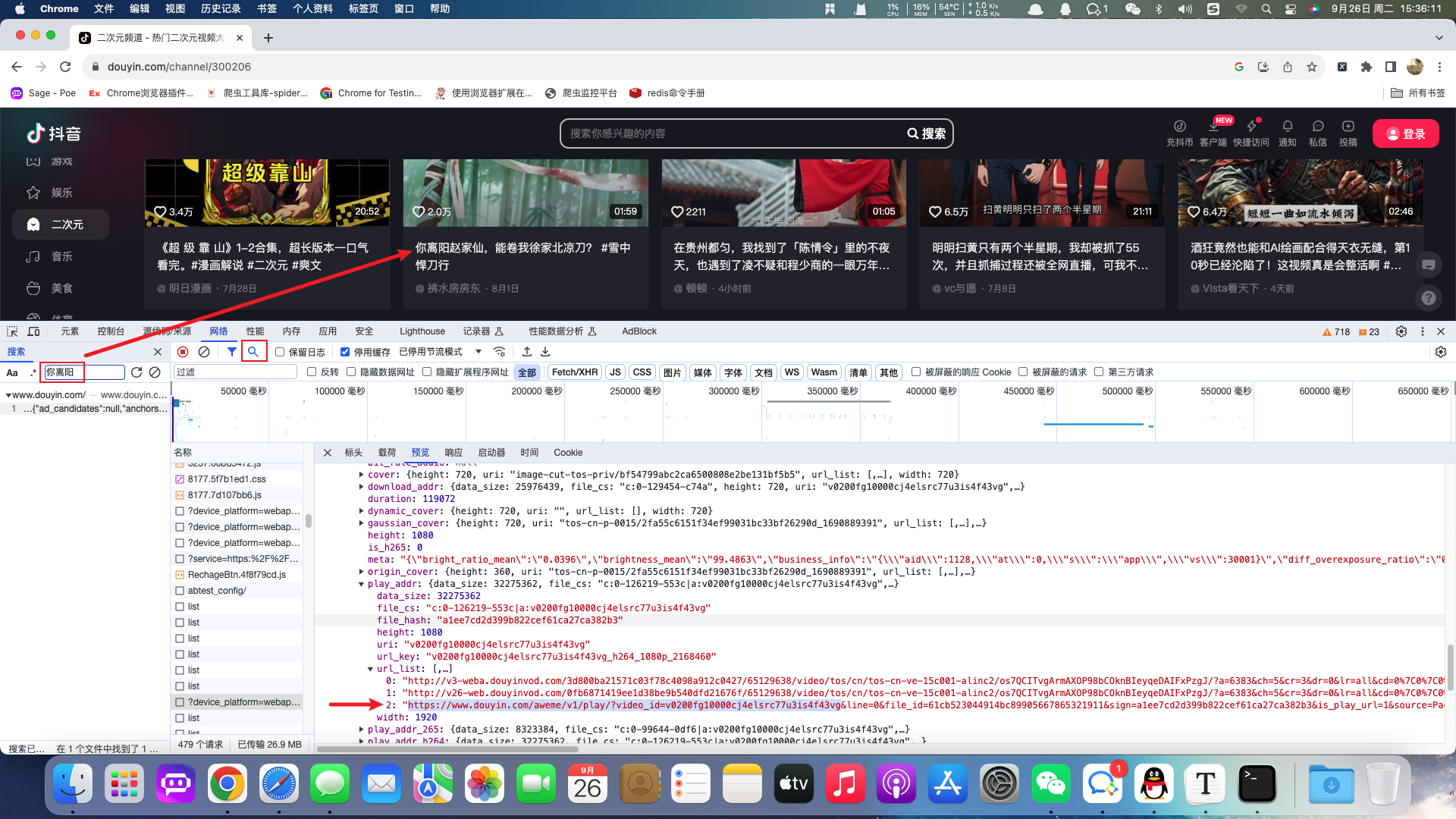 根据抓包分析出当前视频的api接口并返回json数据。在json数据中包含视频的播放地址,位于当前api的url_list节点。