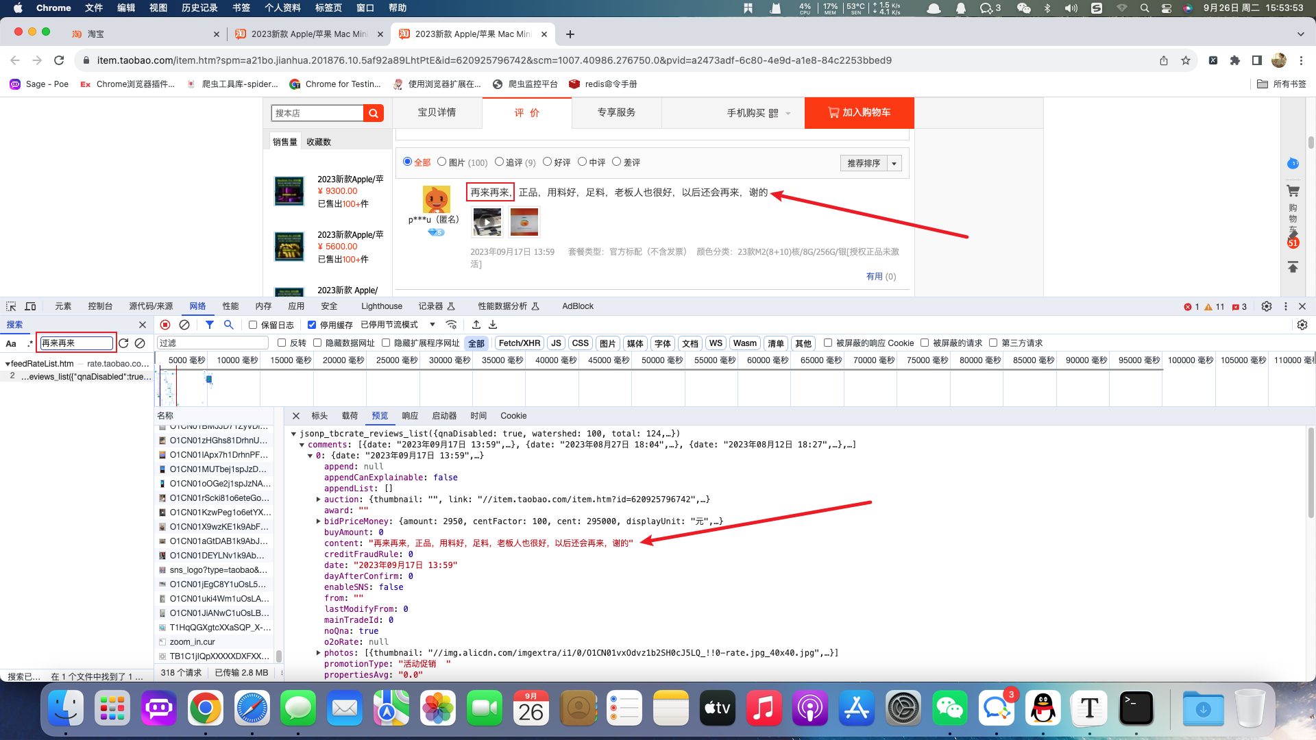 根据浏览器抓包工具获取对应的评论api并获取响应的json数据。