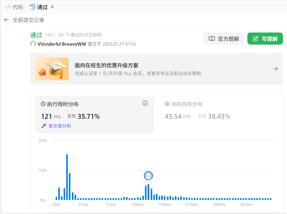 可以看到时间消耗很大,因为这是通过dp暴力求解,后续本文将会继续补充更快的解法。