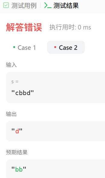 仔细琢磨, 刚刚给出的代码如果按照"cbbd"的话, 它只能判断出单个字符的两边是否相等。