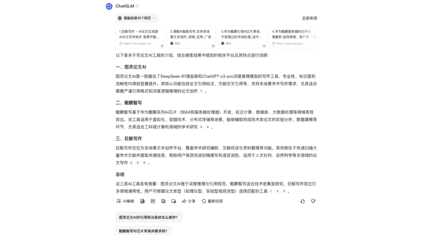工具简介:智谱清言可以系统化地构建论文框架、智能生成摘要及章节内容,能显著提升学术写作效率。它支持多轮深度交互的对话机制,能够通过语义理解与逻辑推理,为研究者提供跨学科视角的学术洞察,尤其在选题论证、理论框架搭建等关键环节展现出创新价值。但需要特别注意的是,该平台基于公开语料库训练,生成的文本存在与既有文献语义相似的风险。