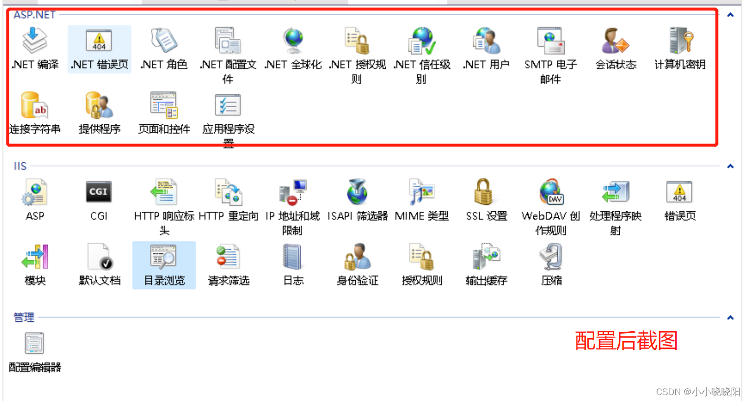 我本地的项目是一个asp.net项目,在经过上述配置后只是显示出目录信息,仍然我发打开网站,后续发现我的iis中没有asp.net选项