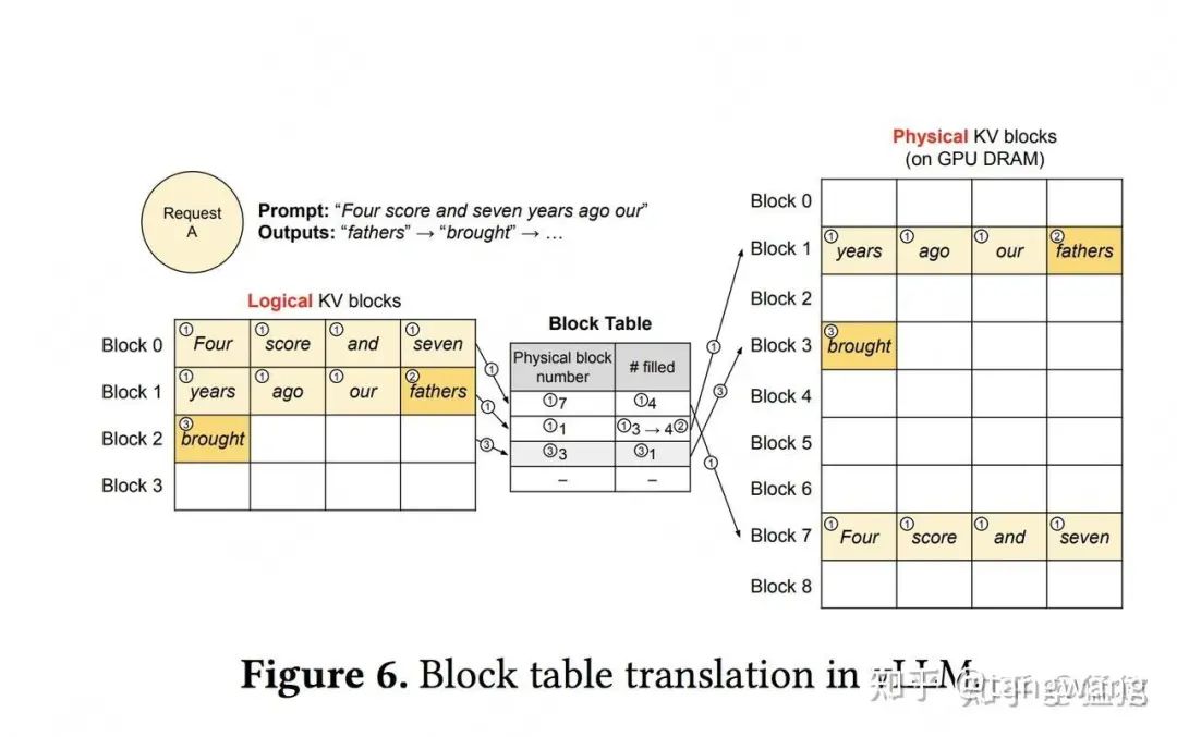• 每个block类比于虚拟内存中的一个page。每个block的大小是固定的,在vLLM中默认大小为16,即可装16个token的K/V值