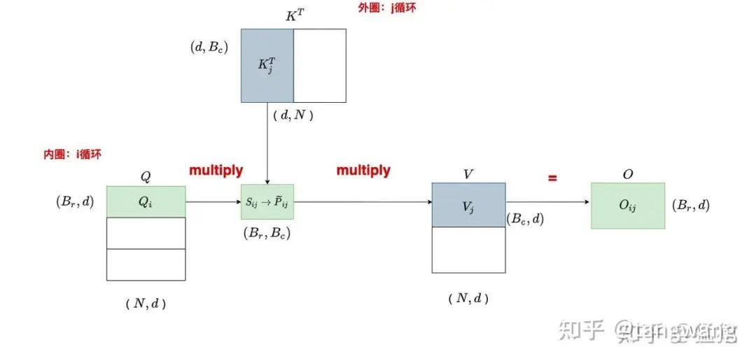 因此想办法进行分块计算,拆到足够小,就能全塞到L1缓存上(比如说A100的L1只有192KB)进行计算了,不需要将这些参数从显存反复的读入读出,只需要读L1缓存,就实现了加速。但是softmax是需要需要知道全局信息的,所以分块计算后,需要一些技巧对结果进行融合。