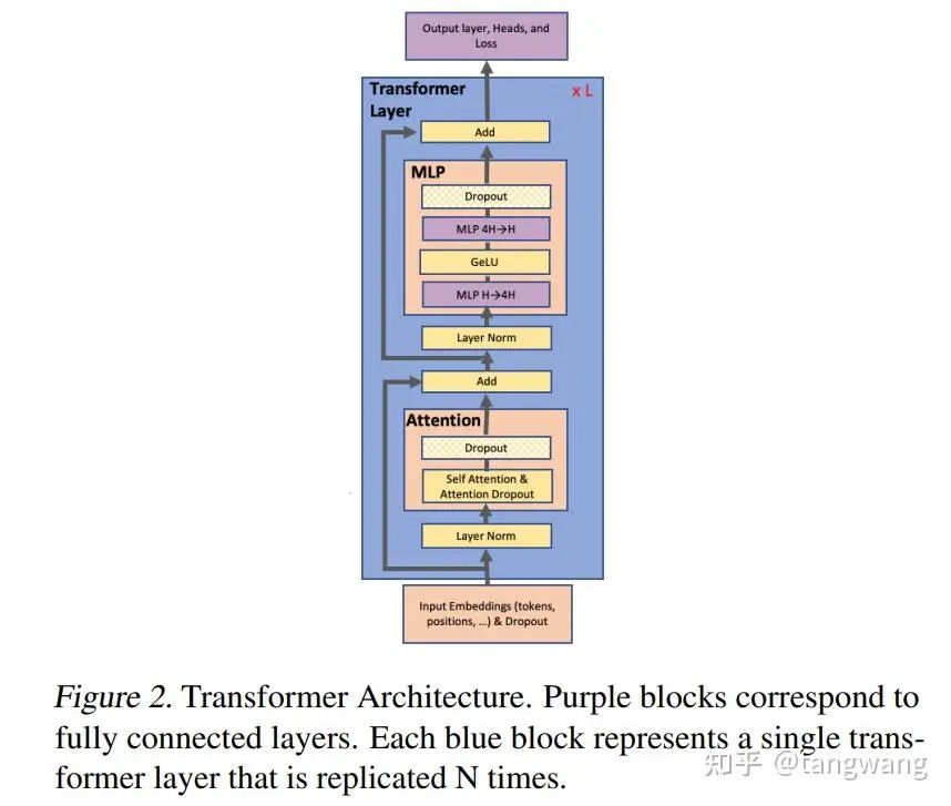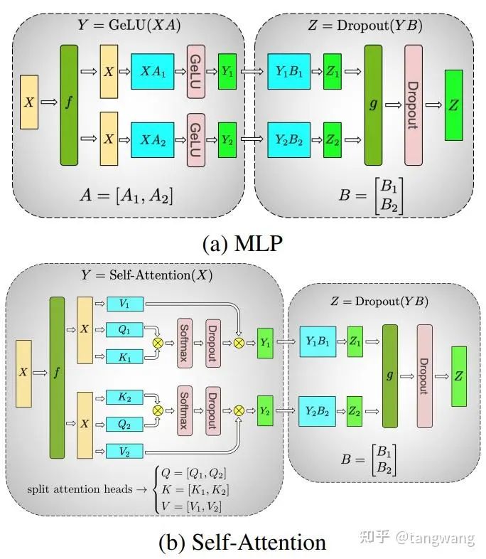 Megatron-LM: Training Multi-Billion Parameter Language Models Using Model Parallelism 使用的是模型并行(把一个层中间切开)