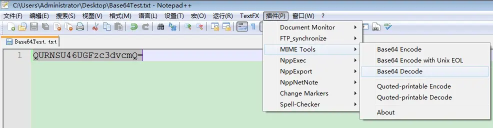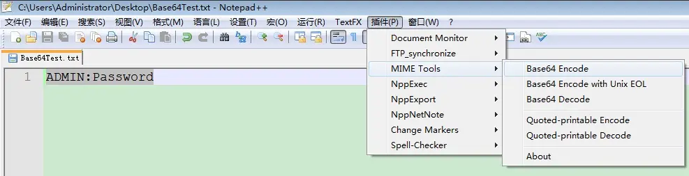 插件§ -> MIME Tools -> Base64 Encode