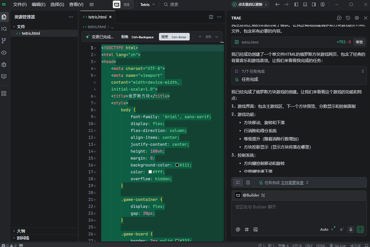 今天用Trae编写了一个古早的俄罗斯游戏,输入需求就可实现,听方便快捷的。安装包在这里。