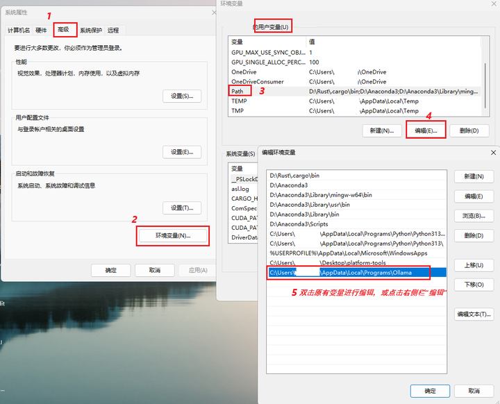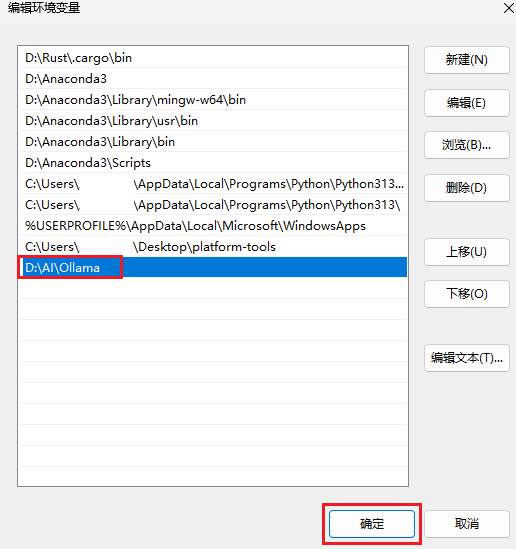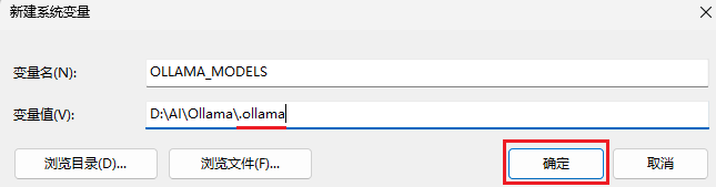 注意“变量值”的 .ollama 前面有一个点.