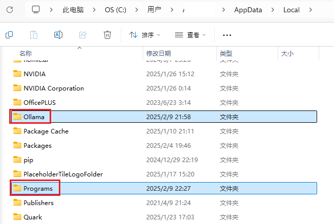 ☀️以上操作没问题后,我把上记第2步骤C盘内的.ollama文件夹删了,及第3步 Programs 文件夹内 Ollama文件夹也删了,没有影响。