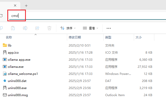 下图是Programs 文件夹内 Ollama 文件夹里的内容,约有4.56GB