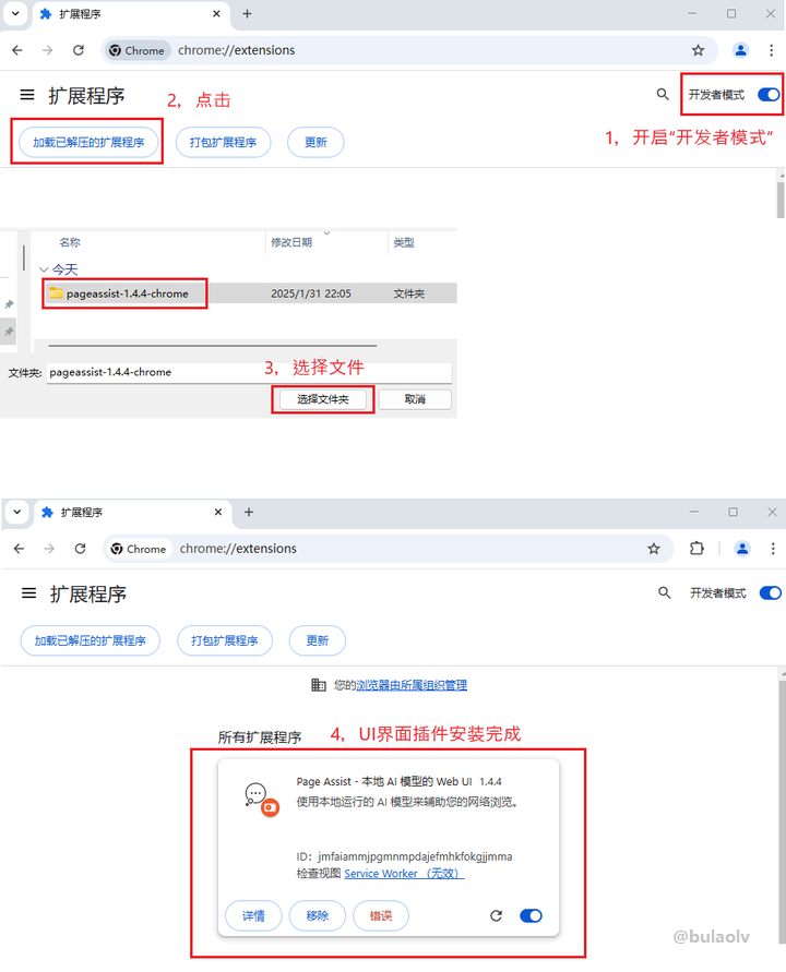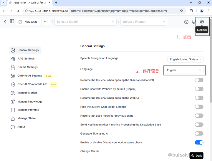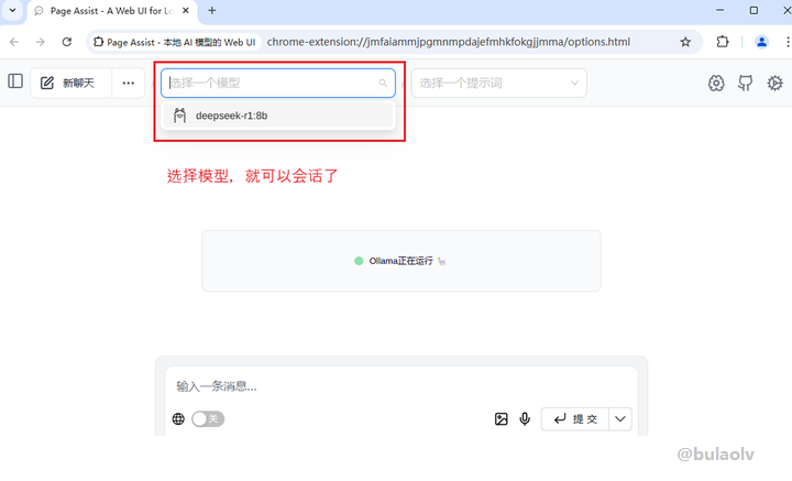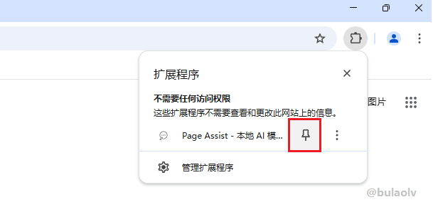 点击“扩展”后,再点击图钉把UI界面固定,使用的时候点击它就好了,别忘ollama也启动哦,ollama启动后在显示屏右下角展开后能看到一只小羊驼的样子🦙
