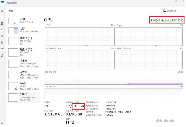 1,确认显卡内存,我的是RTX 3080,10 GB显存
